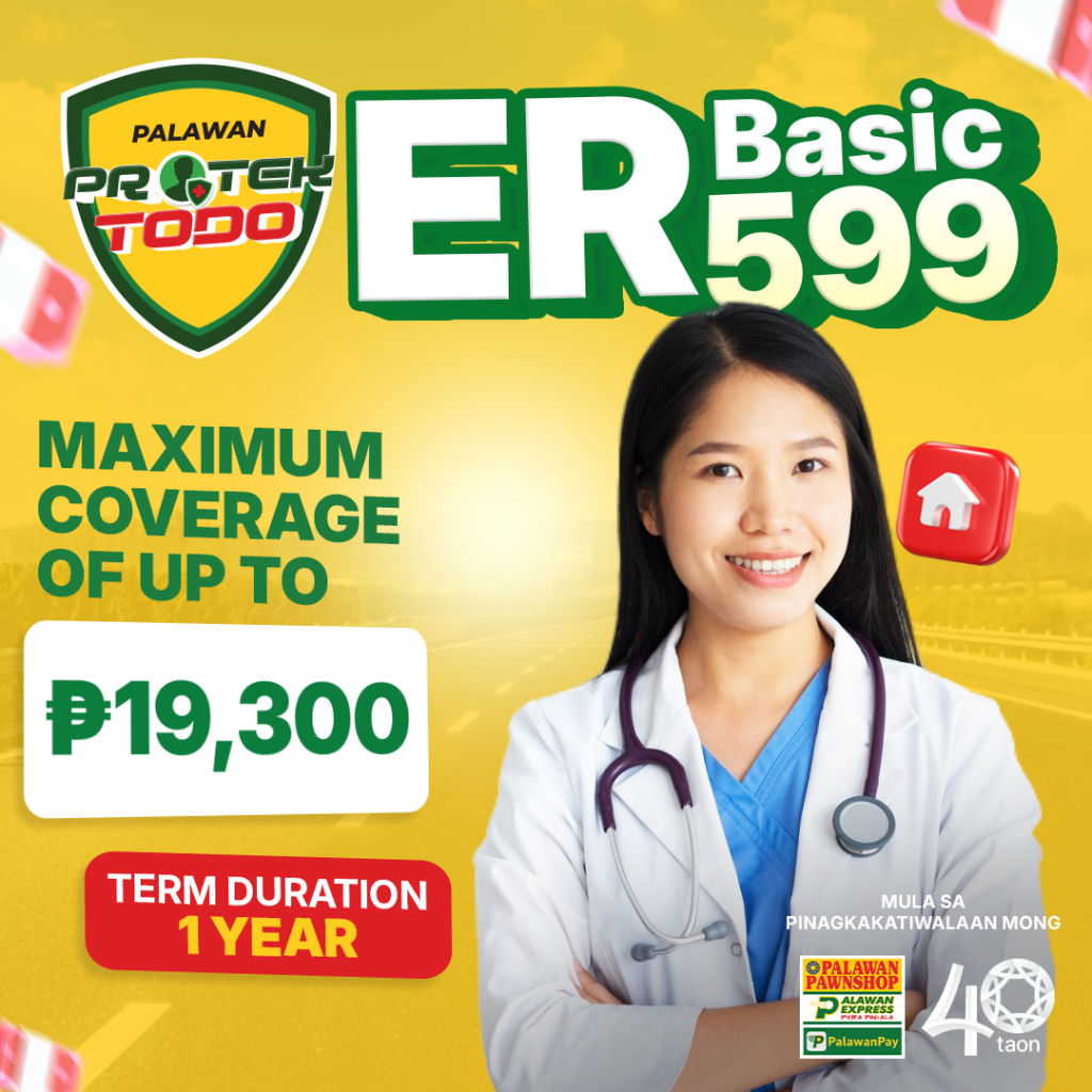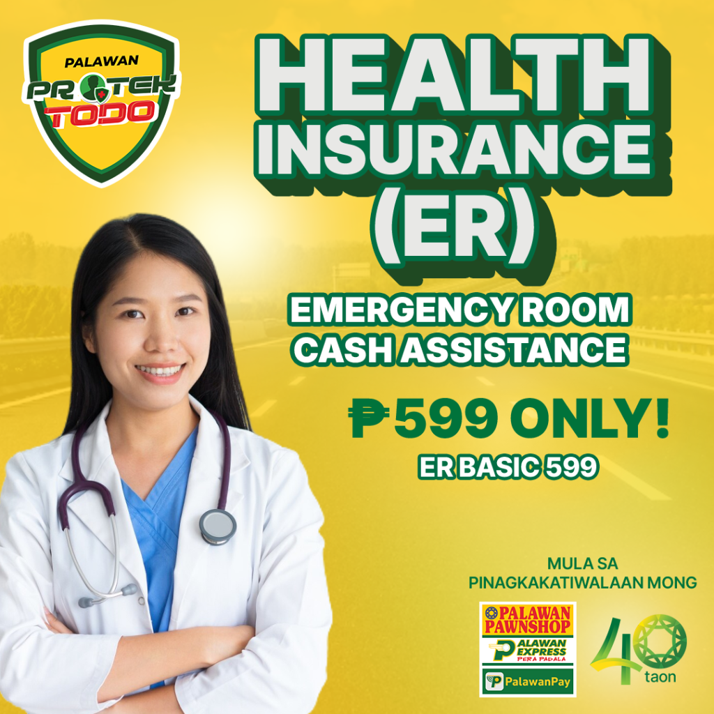 ER Plus ProtekTODO is a Medical Insurance valid for (1) one year for individuals aged 1 to 70 years old. The program covers One-time Emergency room treatment as a Reimbursement Type Medical program and Hospital confinement allowance that pays for the daily income benefit for a maximum of 31 days when insured is confined via Emergency in a hospital.