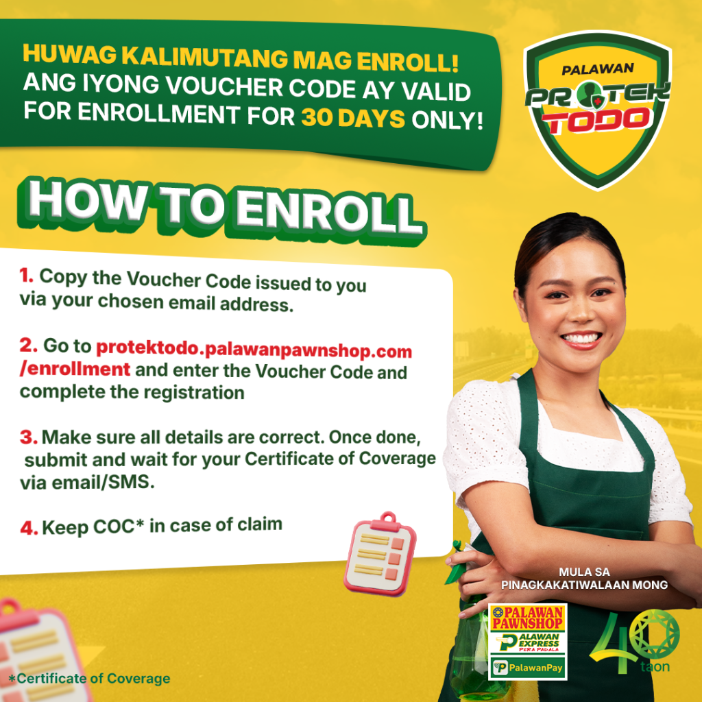 Insurance Premium: P30.00 / Maximum of five (5) policies.