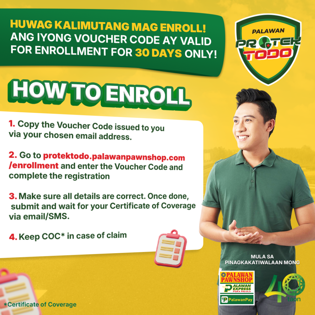 Insurance Premium: P20.00 / Maximum of five (5) policies.